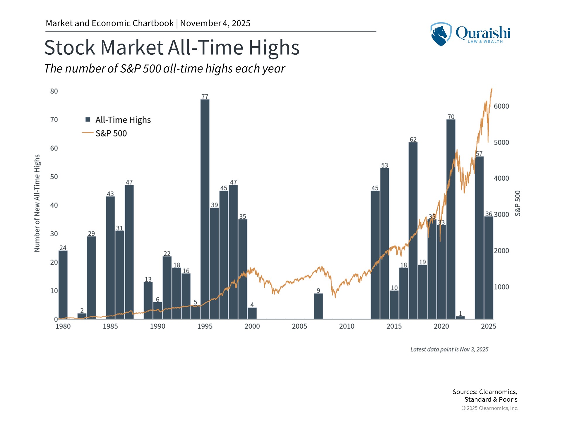 This pattern has repeated throughout the year, with trade-related concerns causing temporary pullbacks followed by a market recovery. Specifically, the S&P 500 has risen 37% from its April low and has set 36 new all-time highs this year through October. Of course, the market never moves up in a straight line, so this is a reminder that short periods of market volatility are normal and expected.