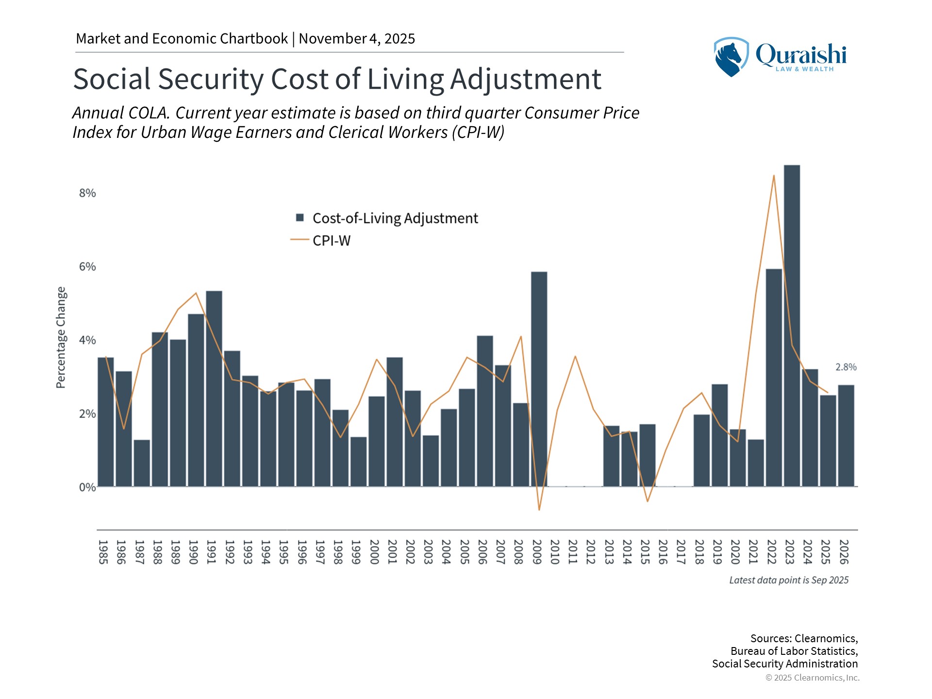 The Social Security Administration also announced a 2.8% cost-of-living adjustment for 2026, a modest increase compared to recent years that may not keep up with the rising expenses that many retirees face. Combined with falling interest rates on cash holdings, this underscores the importance of balanced portfolios that provide both income and growth.